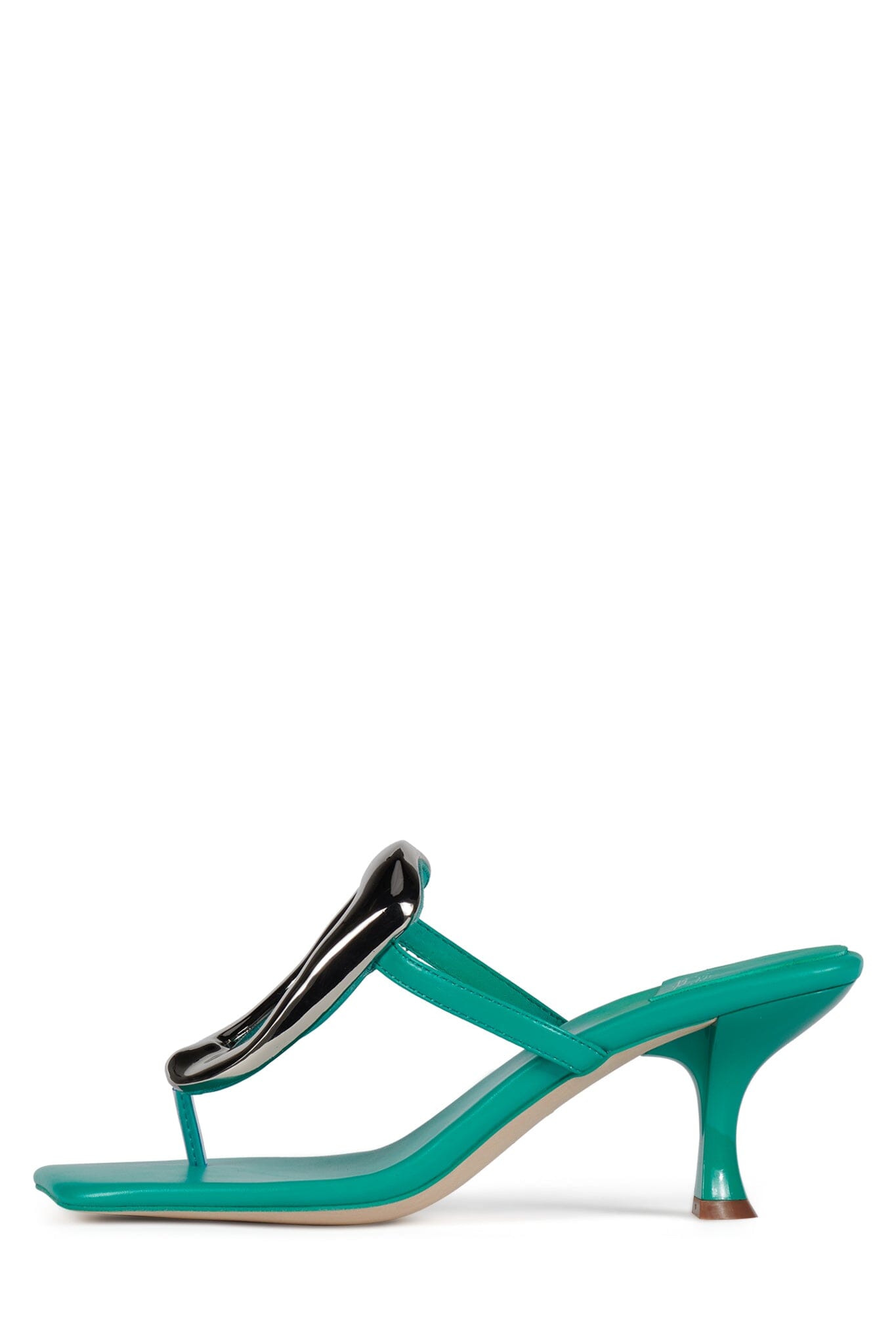 Heeled thong sandal with metal embellishment